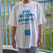シンプルでスタンダード、かつ「END FACTORY FARMING 工場畜産を終わらせよう」というメッセージが特徴の一枚です。